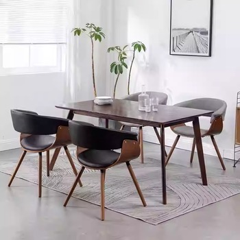 Modern Restaurant Furniture Solid Wood Leather Dine Chair Walnut Color Dining Chairs for Restaurant and Dining