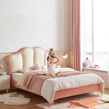 Luxury Modern Wooden Simple Pink Princess Bed Girls Bedroom Furniture Queen 1.2 Meter Leather Bed 1.5 Meter Bedroom Furniture